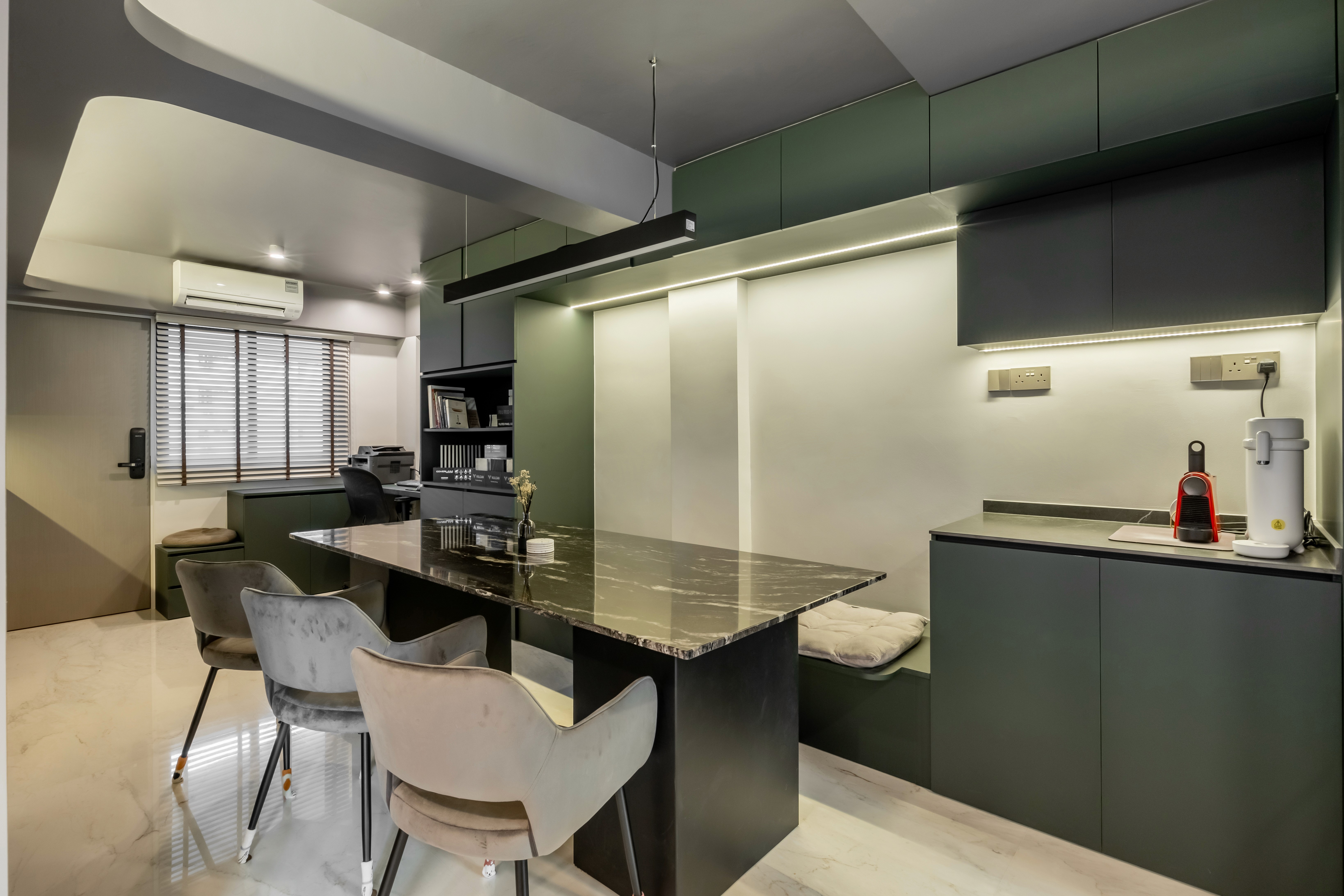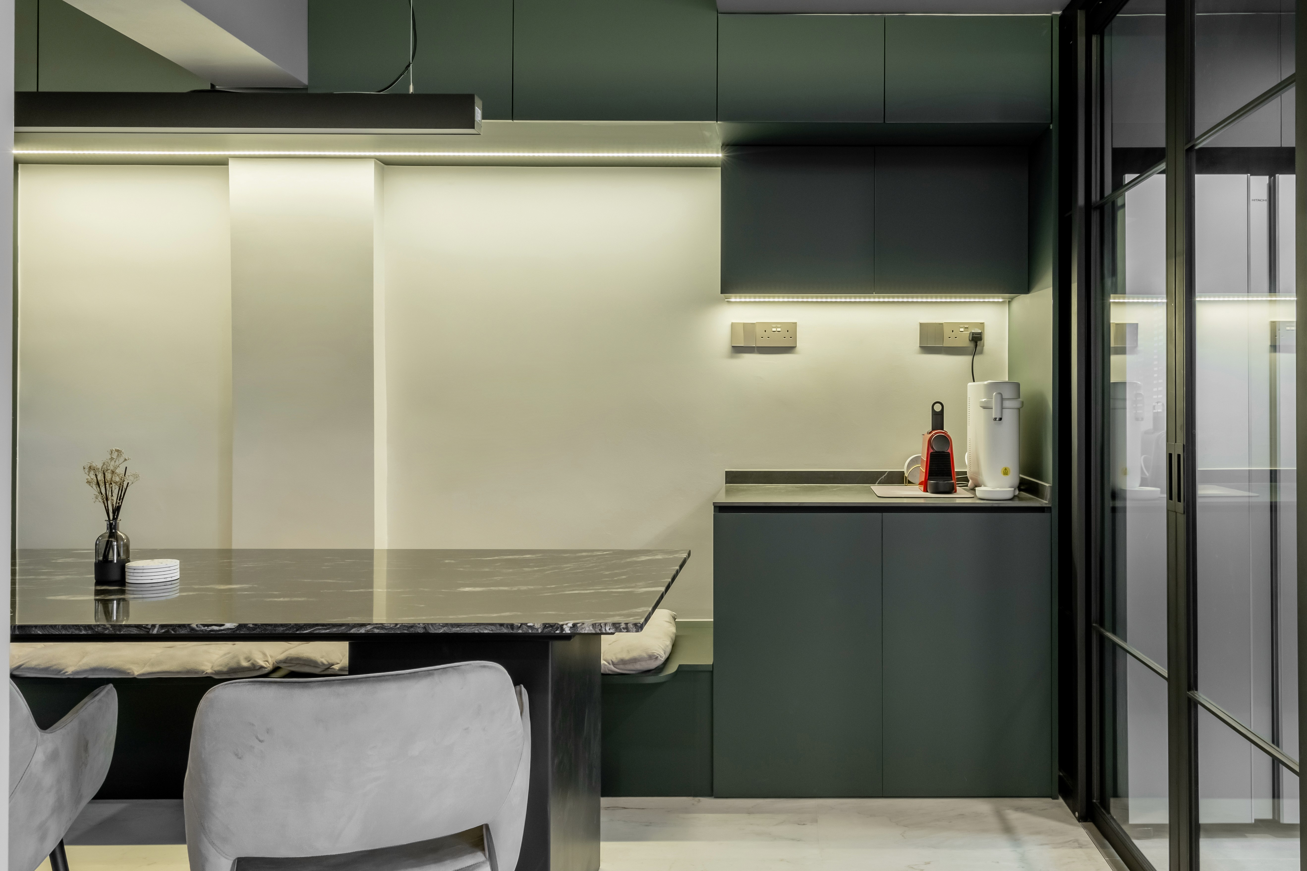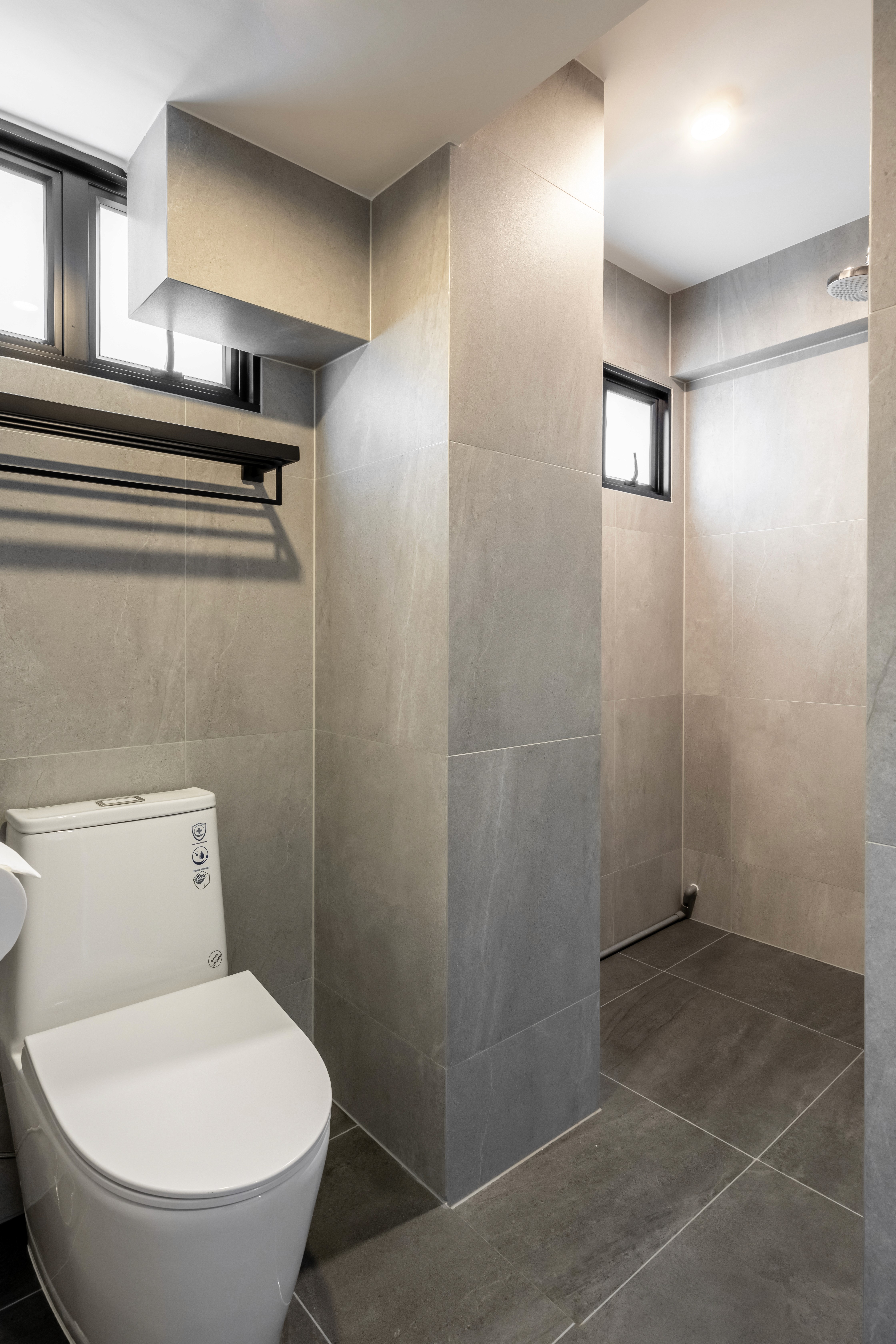 This Marine Gardens residence embodies modern luxury and refined living through a harmonious blend of materials and thoughtful design. White marble and terrazzo flooring create a luminous foundation that elevates the open living and dining areas, where rich, darker palettes envelop the space in warmth and sophistication, perfect for intimate gatherings or quiet evenings.