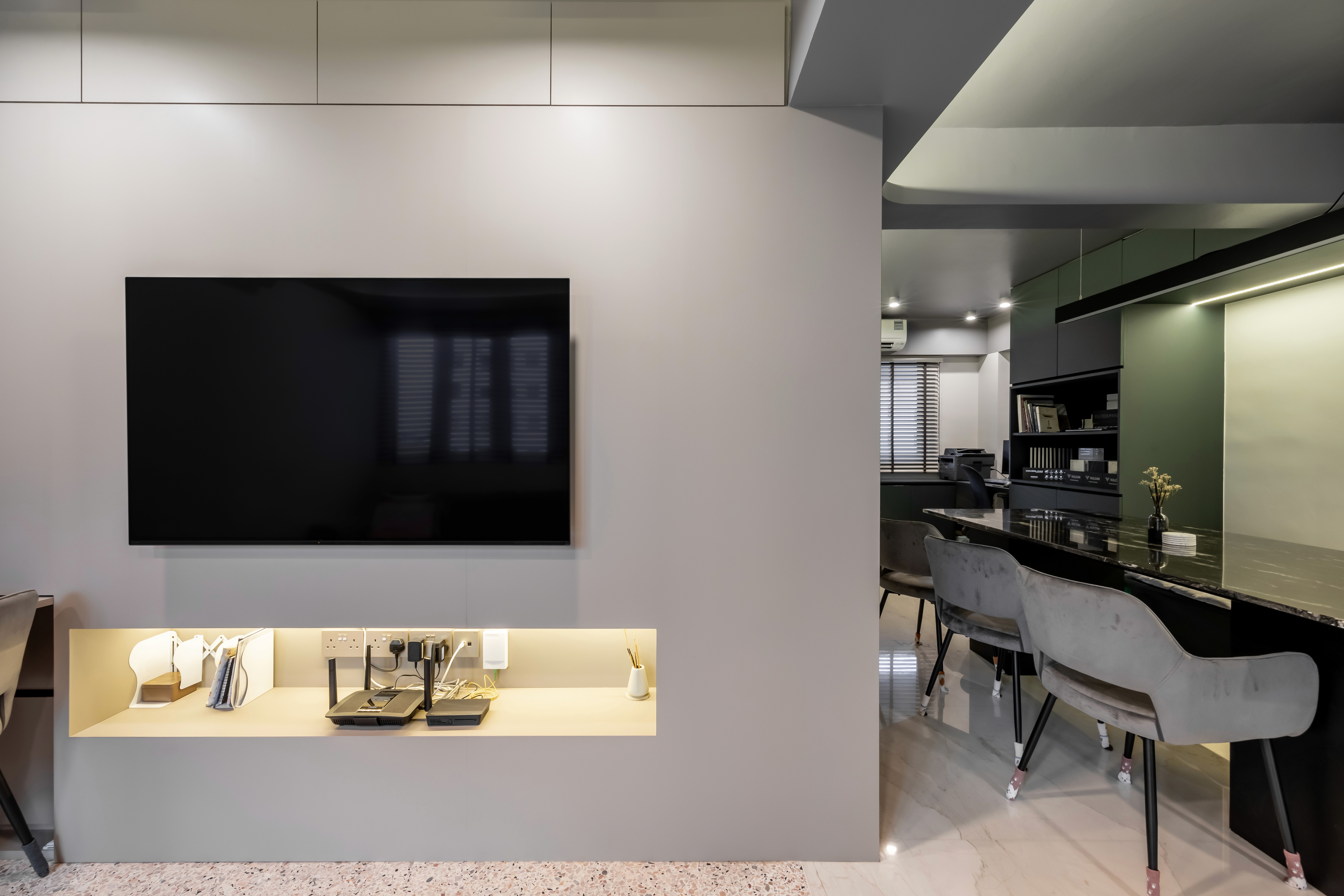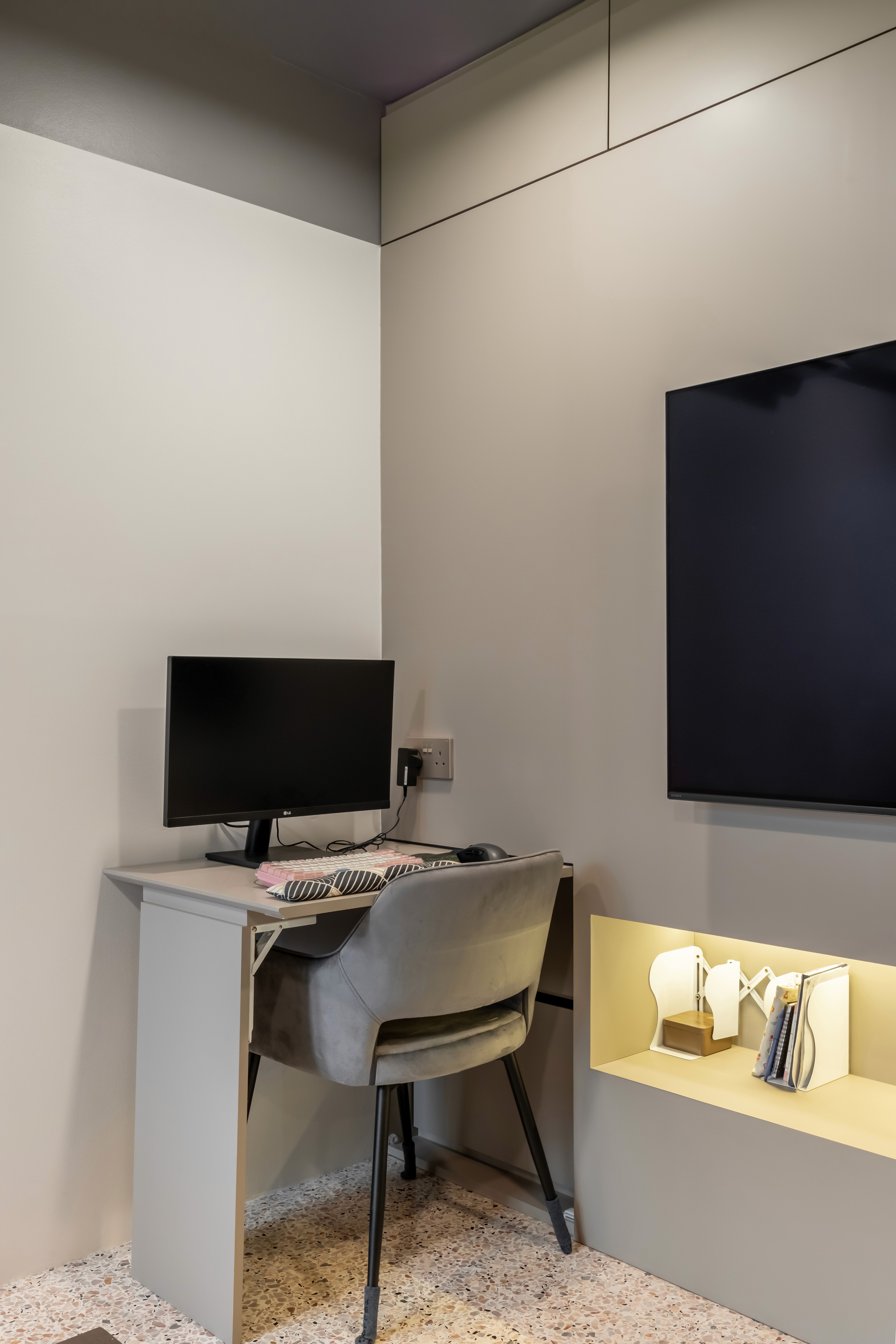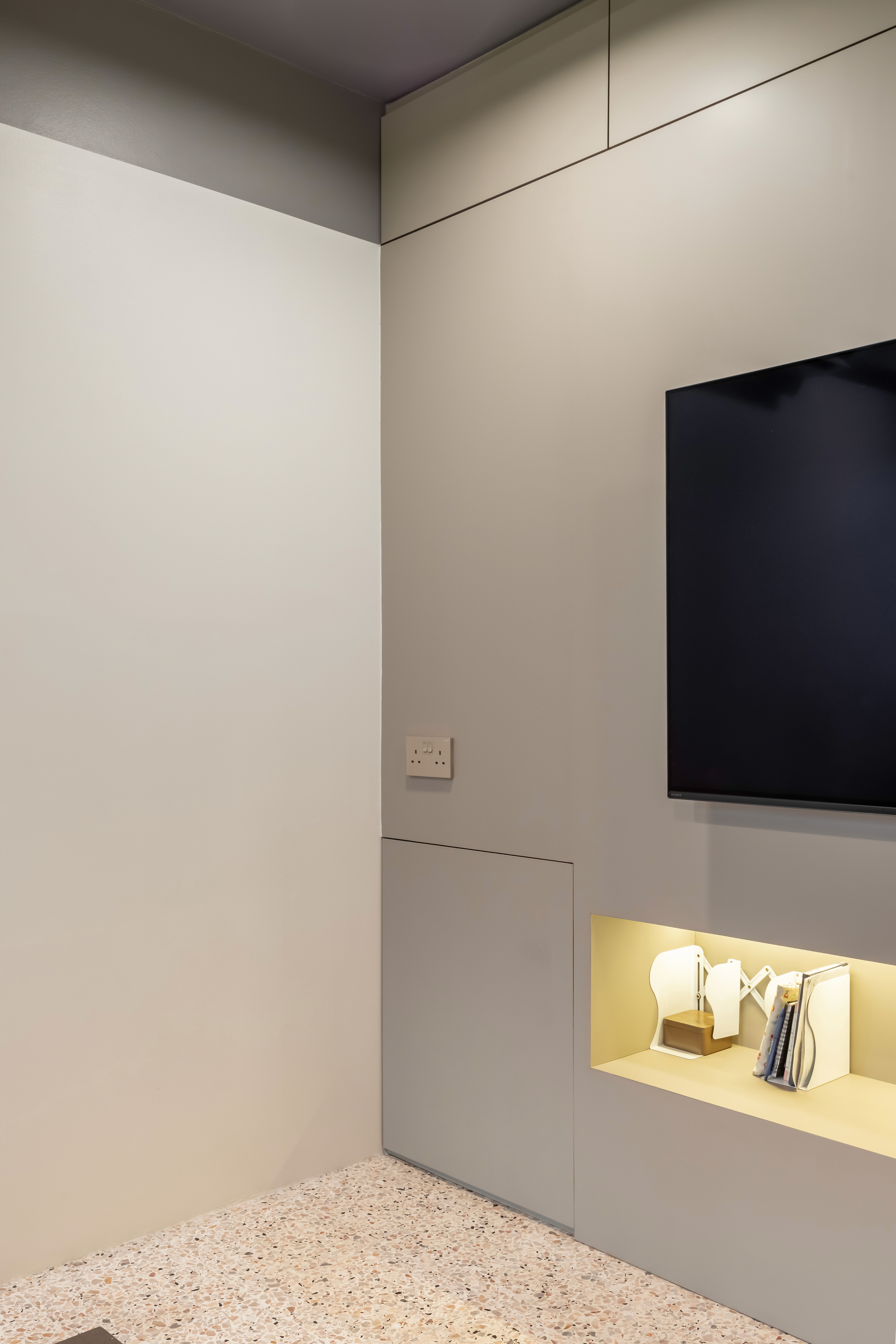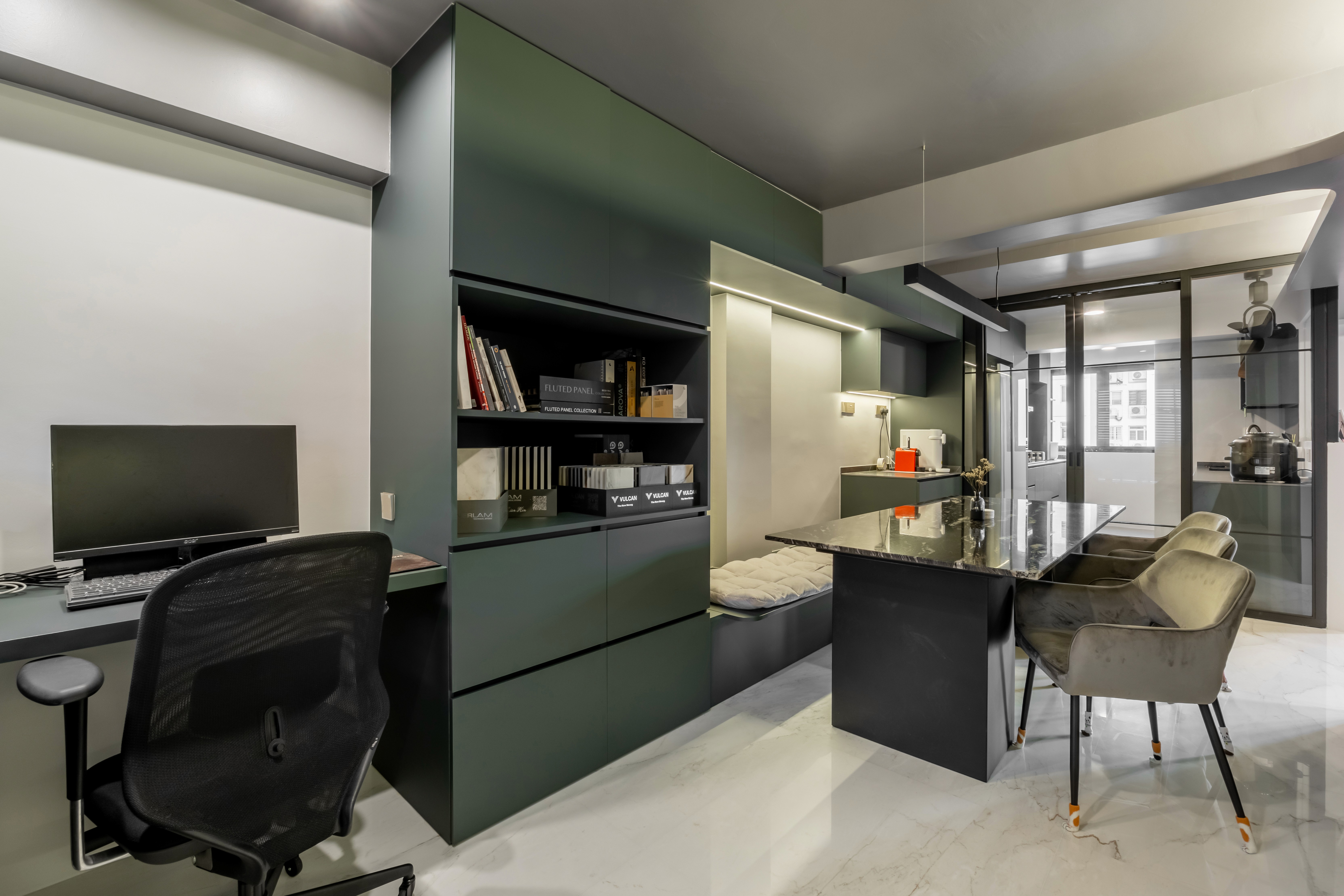This Marine Gardens residence embodies modern luxury and refined living through a harmonious blend of materials and thoughtful design. White marble and terrazzo flooring create a luminous foundation that elevates the open living and dining areas, where rich, darker palettes envelop the space in warmth and sophistication, perfect for intimate gatherings or quiet evenings.
